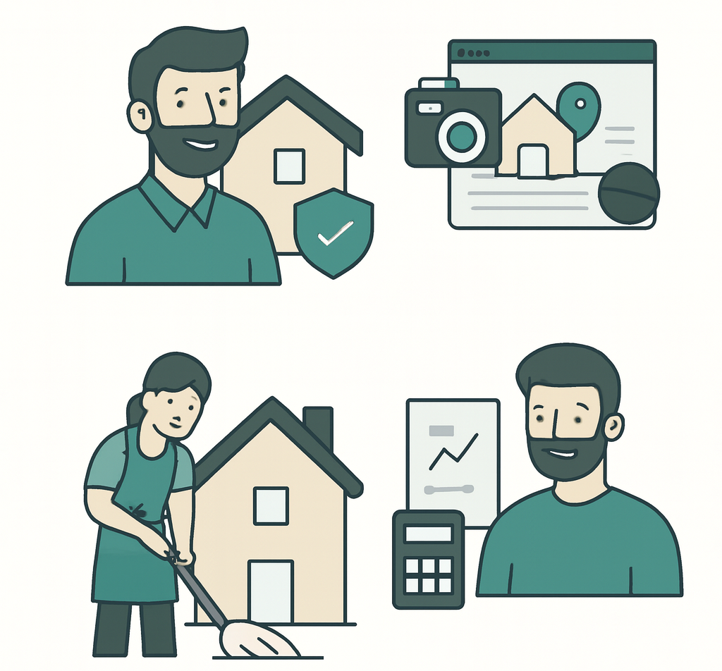 Desde a preparação do anúncio, check-ins, manutenção, limpeza, comunicação com hóspedes, até à otimização de preços.